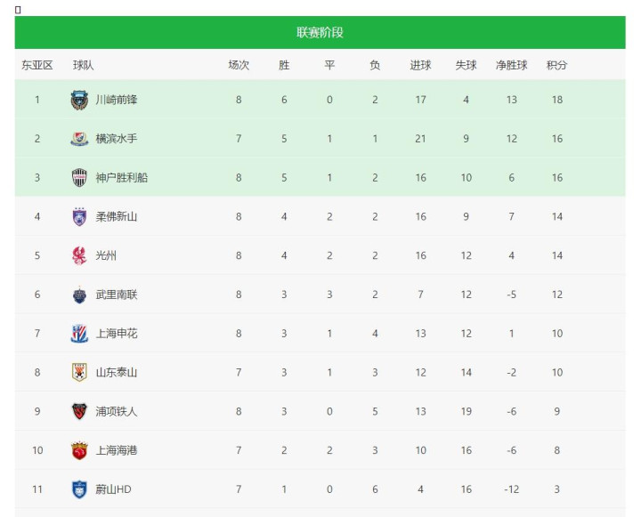 看看已经确定出线的球队,基本上都是实力比较强的球队,川崎前锋拿了18分,横滨水手和神户胜利船都有16分。